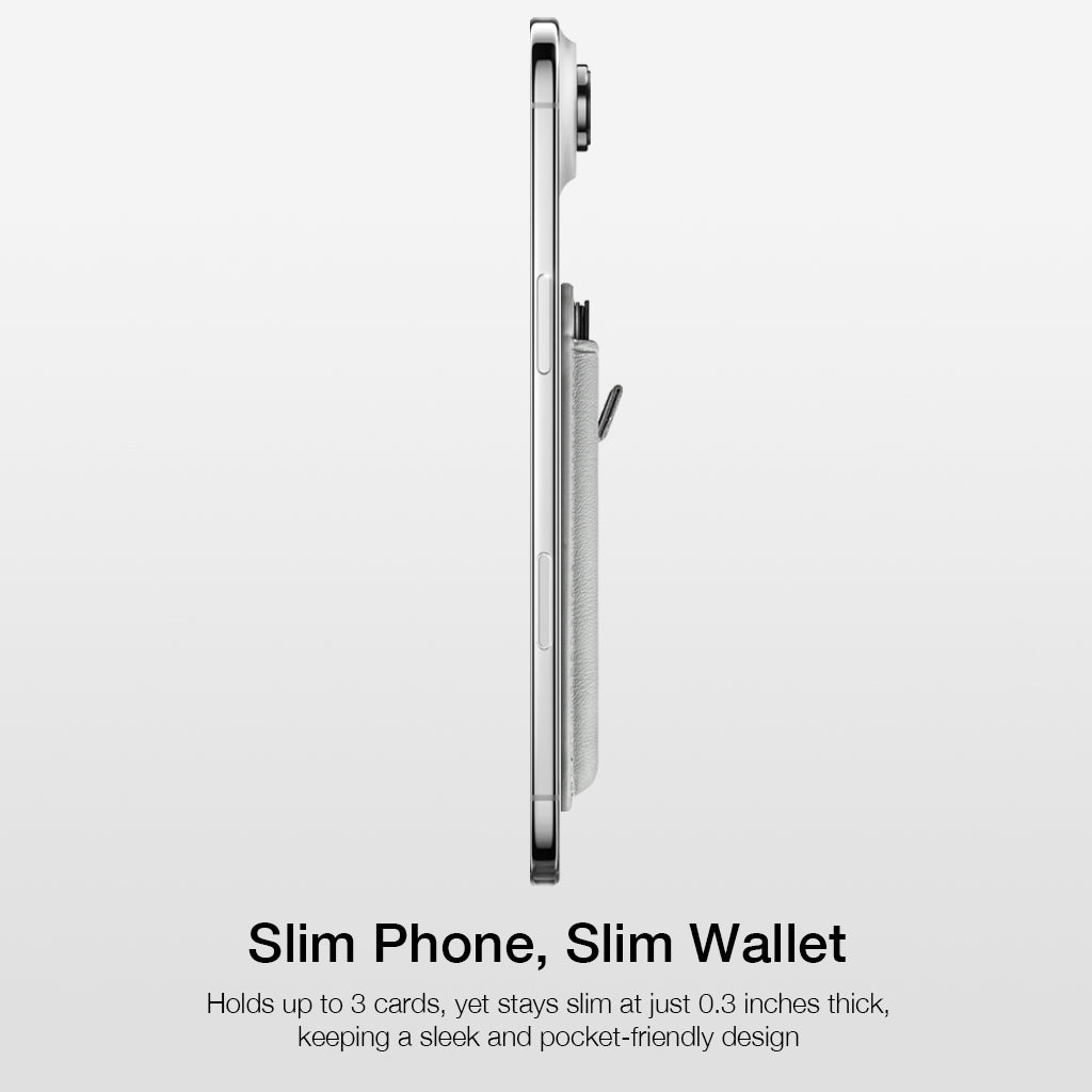 The Enclave Wallet is a sleek, minimalist MagSafe accessory that merges style and everyday convenience. Made from premium PU leather, it delivers a sophisticated look with durable, easy-to-maintain performance—while serving as a vegan-friendly alternative to traditional leather. Designed to carry just the essentials, the Enclave Wallet holds up to three cards in a slim 0.3-inch profile, keeping your daily carry light and effortless. Its easy pull-tab feature allows instant card access with a smooth, one-motion release, while the strong MagSafe connection ensures your wallet stays securely attached to your iPhone. With refined craftsmanship and a modern aesthetic, the Enclave Wallet is built for those who appreciate both simplicity and sophistication.